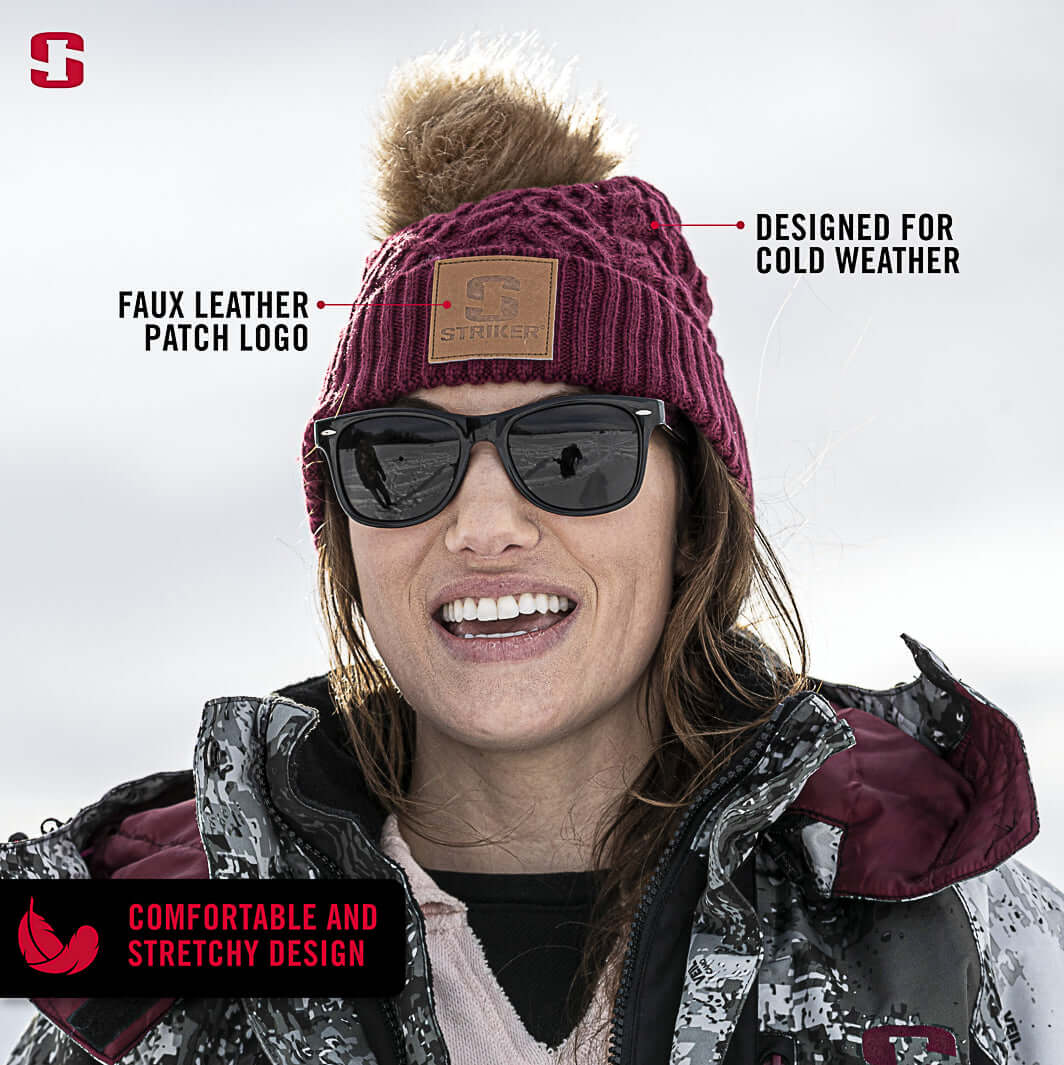 From ice fishing adventures to casual winter jaunts, this stylish cable knit design is perfect for any cold-weather occasion. Faux fur pom and decorative logo patch make the Women’s Stella Hat a trendy option to pair with your Women’s Stella Suit.
